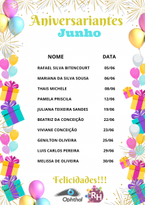Aniversariantes de Junho
