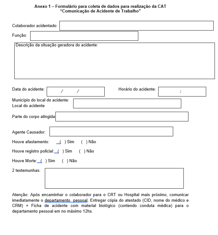 Anexo – Formulário – Comunicação de Acidente de Trabalho