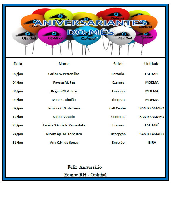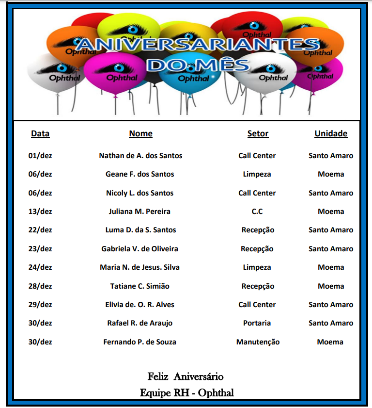 ANIVERSARIANTES MÊS DE DEZEMBRO