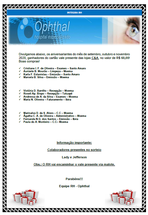 MENSAGEM OPHTHAL – BOAS FESTAS!